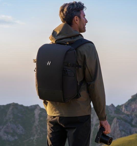 約20Lの容量で、Hasselbladカメラとレンズ2本に加え、ノートパソコン、タブレット、アクセサリーも収納可能。3つの取り外し可能な仕切りを搭載し、内部を自由にカスタマイズできます。すべてのジッパーは防水構造を備えており、表面素材は、軽い雨や水飛沫を水滴を弾きます。