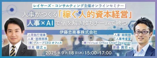 株式会社レイヤーズ・コンサルティング(東京都品川区、代表取締役CEO:杉野 尚志、以下:レイヤーズ)は、オンラインセミナー『人事がつくる「稼ぐ人的資本経営」 人事×AIで個を解き放ちチームで勝つ』を2025年9月18日(木)に開催することを発表いたします。