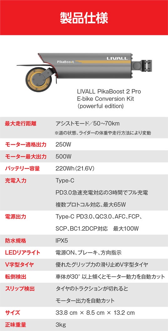 LIVALL Japanは、お持ちの自転車をわずか30秒で電動アシスト化できる後付けコンバージョンキット「PikaBoost 2 Pro」のクラウドファンディングを、2025年8月27日、クラウドファンディングサイト・CAMPFIREにて開始しました。