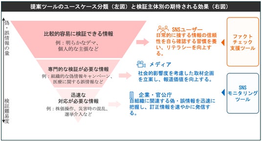 社会全体の情報検証能力を底上げ:検証が比較的容易な情報はSNSユーザーが自ら対応し、専門的な検証が必要な情報はメディアや企業・官公庁が担う、という検証難易度に応じた社会的な役割分担を促進します。これにより、情報発信側に比べて検証側のリソースが圧倒的に不足する「非対称性」という構造的課題の解決を目指します。
