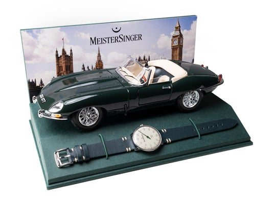 ドイツ発の機械式腕時計ブランド「MeisterSinger(マイスタージンガー)」は、伝説のクラシックカー“ジャガーEタイプ”をオマージュした限定モデル「Edition Neo J.E」を発表。ジャガーEタイプの1:18スケールモデルカーが付属する特別パッケージを、全国発売に先駆けて『阪急メンズ東京 Fortune Time(東京都有楽町)』および新店舗『NEXT BRIDGE by Fortune Time(大阪市中央区)』の2店舗にて、2025年8月29日(金)より3か月間限定で先行販売いたします。