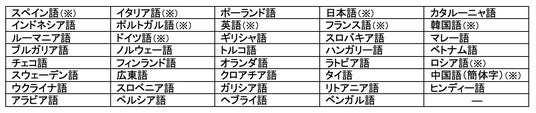 <全39言語ラインナップ>(※)・・・既に対応している言語/順不同