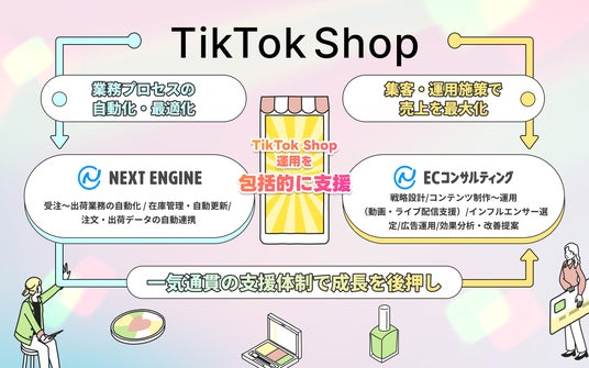 今後NEは、TikTok Shopに取り組むEC事業者に対して、フロントエンド支援(集客・運用)からバックエンド連携(業務効率化)までを包括的に支援し、新たな販売チャネルの立ち上げと持続的な運用をサポートしてまいります。
