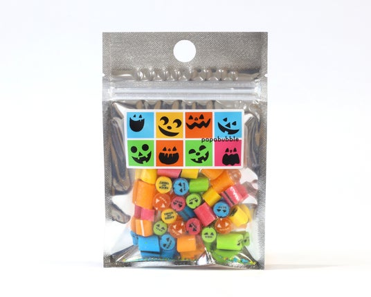 キャンディは顔に添えてホラー&ユニークな写真撮影に、バブレッツはカプセルにリボンをつけてデコレーションにも活躍。食べても飾ってもインパクト抜群のハロウィンアイテムです。