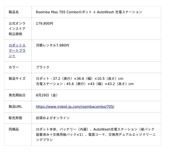 アイロボットジャパン合同会社(本社:東京都千代田区/代表執行役員社長 挽野元)は 「Roomba Max 705 Comboロボット + AutoWash(TM) 充電ステーション」を8月29日(金)より全国のアイロボット認定販売店およびアイロボット公式オンラインストアにおいて発売を開始いたします。