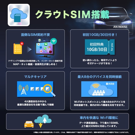 10GB/30日が初回無料4大通信会社の中から最適な通信会社を自動で選んで接続するクラウドSIMを採用