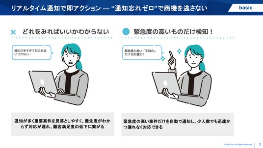 1. リアルタイム通知で即アクション - “通知忘れゼロ”で商機を逃さない重要な申込や問い合わせだけを抽出し、自動通知。商談機会や顧客満足度の向上に直結。