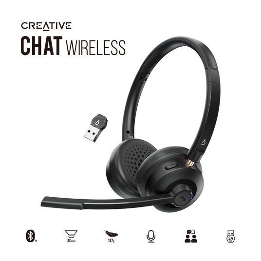この度、クリエイティブメディアから、PC用の専用USBワイヤレス ドングルによる2.4GHz ワイヤレス接続と、一般的なBluetooth接続の双方に対応したワイヤレス ヘッドセット「Creative Chat Wireless」が登場、クリエイティブメディア直販オンラインストア クリエイティブストア(弊社ホームページ内)にて8月27日より発売致します。