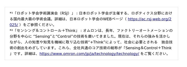 オムロンは、今後も、自社が得意とするコア技術「センシング&コントロール+Think」*²の追究によって、機械が人の能力を最大限に引き出す世界、“人と機械の融和”を実現してまいります。