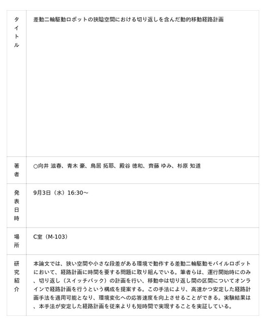 第43回 日本ロボット学会 学術講演会■開催期間・場所
