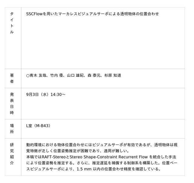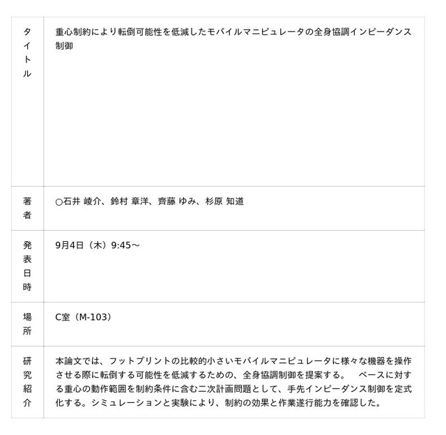 なお、今回の学術講演会では、ラボオートメーションの技術に加えて、ロボットの柔軟な関節動作に関する技術論文も発表いたします。