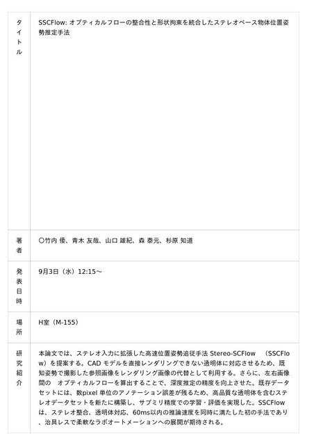 ラボオートメーションとは、創薬をはじめとするラボでの研究のうち、実験の準備や片付け、試薬・実験機器・設備の操作、データ収集など、これまで自動化が難しかった一連の非定型な作業を次世代ロボットで自動化し、研究員がより創造的な活動に時間を費やせるようにすることを指します。今回は、以下に関する要素技術の研究論文7件を、国内最大級の学術会議である「日本ロボット学会」にて発表します。