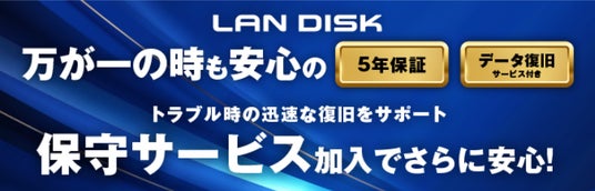 本商品は、お客様により長く、安心してNASをご利用いただくために、高い保証レベルでの”安心”を実現した「5年保証」+「データ復旧サービス」を標準添付いたしました。データ復旧作業費用合計150万円(税込)まで可能なサービスが標準でついてきます。