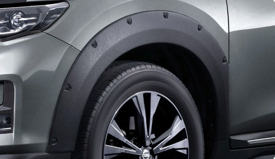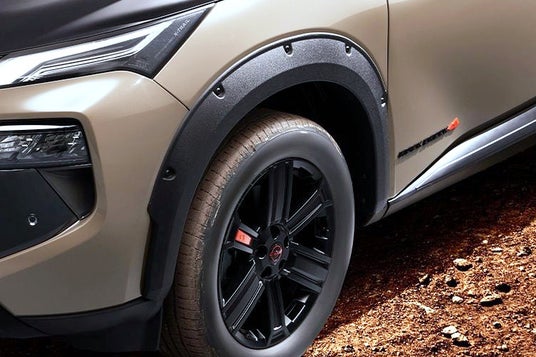 アウトドアシーンで目を引くカスタマイズを施しただけではなく、デザインと機能性の両立を目指して開発された日産自動車の「SOTOASOBI パッケージ」。その第2弾として発表された新型エクストレイル(T33)用SOTOASOBIパッケージに、アフターパーツマーケットでもご好評をいただいている「JAOSフェンダーガーニッシュ typeX」が採用されました。それも、ブラックのダミーボルトと強固な皮膜が特徴のタフブラックで仕上げたヘビーデューティー仕様。スマートなエクストレイルのサイドビューが、同品の装着によってクロスカントリーカーらしくワイルドに引き締まります。また、併せて旧型エクストレイル(T32)用に展開されたSOTOASOBIパッケージにも同じく「JAOSフェンダーガーニッシュ typeX」のタフブラック仕様が採用されています。