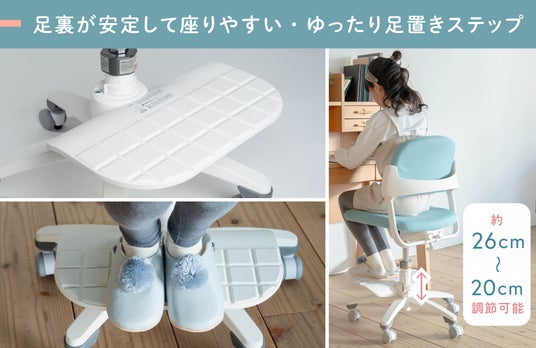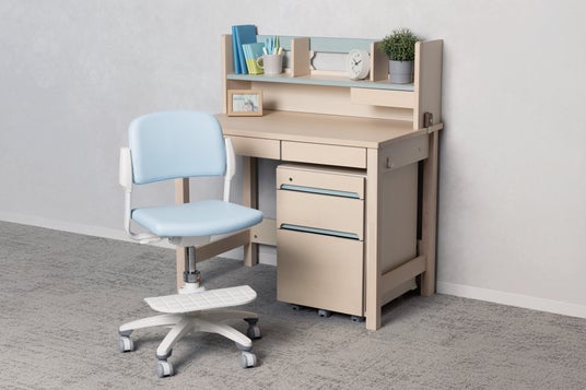 学習机をはじめ、成長に合わせて正しい姿勢をサポートするチェアや、片付ける力を育む