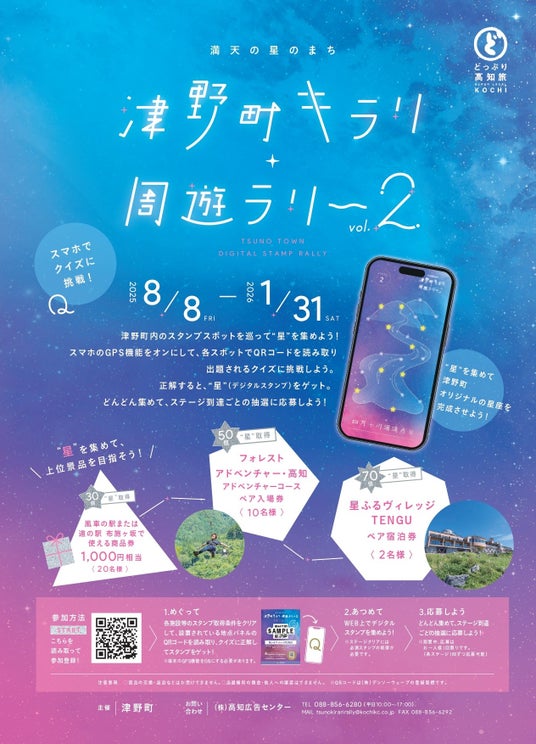 高知県津野町では、昨年も大好評のデジタルスタンプラリー「津野町キラリ周遊ラリー Vol.2」を開催します!