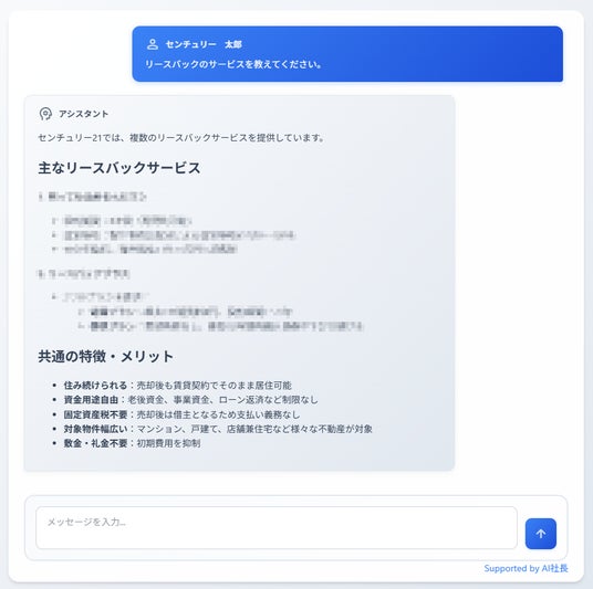 株式会社センチュリー21・ジャパン(本社:東京都港区、代表取締役社長:高坂勇介、以下「当社」)は、株式会社THA(本社:東京都新宿区、代表取締役:西山朝子、以下「THA」)が開発した専用AIツール「AI社長」を導入したことをお知らせいたします。