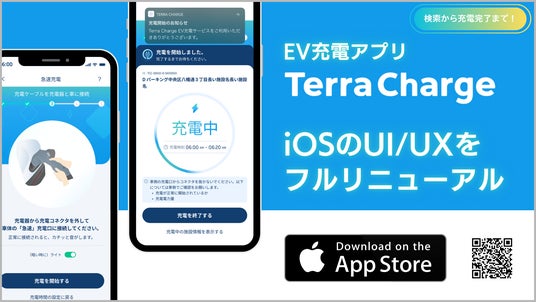 電気自動車(EV)向け充電サービス「Terra Charge(テラチャージ)」を展開するTerra Charge 株式会社(本社:東京都港区、代表取締役社長:徳重徹、以下、当社)は、EV充電アプリ「Terra Charge」において、より快適なユーザー体験の実現を目的にiOS版をフルリニューアルいたしました。EVユーザーにとってのアプリの使いやすさを追求し、直感的な操作性を実現するべくUI/UXの全面刷新を行ないました。