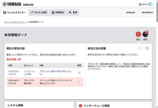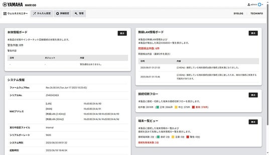「ウェルネスモニター」では、「本体情報ボード」「無線LAN情報ボード」「接続切断フロー」「端末一覧ビュー」の4つの機能でトラブルを可視化し、ヤマハのノウハウに基づいた対策案を提示します。これにより、専門知識の少ないIT担当者でも最適な対応が可能となり、ネットワーク運用における大幅な負担軽減と安定した運用を実現します。