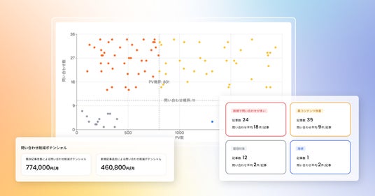 「Helpfeel Analytics」は、AIが膨大な量の問い合わせログを自動でクラスタリングし(※3)、既存のナレッジ記事(FAQ記事)と照合して改善ポイントを抽出します。既存記事があるにも関わらず問い合わせが発生している場合には、「問い合わせ件数」を「ナレッジ記事閲覧数」などと掛け合わせて分析し、「閲覧数が多いのに問い合わせも多い=記事の見直しが必要」といった課題を特定し、具体的な改善案を提示します。さらに、記事が未掲載の場合には、類似ログをもとにAIが記事ドラフトまで自動生成します。これらのAI分析×生成機能により、FAQ運用の負荷を抑えながら、カスタマーサポートに寄せられる問い合わせの削減を実現します。