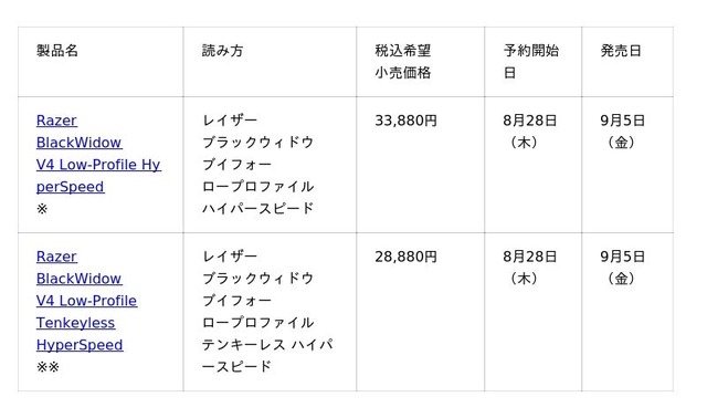 ゲーマー向けライフスタイルブランドとして世界をリードするRazer(TM)(本社:米国カリフォルニア州およびシンガポール、共同創業者兼CEO:Min-Liang Tan)は、本日、同社史上最も先進的なロープロファイル・ゲーミングキーボード「RazerBlackWidow V4 Low-Profile HyperSpeed」と「Razer BlackWidow V4 Low-Profile Tenkeyless HyperSpeed」を発表しました。受賞歴を誇るBlackWidowシリーズに新たに加わるこれらのモデルは、スリムで洗練されたデザインに、最先端のパフォーマンスと快適な操作性を融合しています。2025年8月28日(木)より予約開始いたします。販売開始は2025年9月5日(金)を予定しています。
