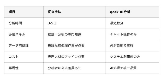 株式会社Quest Research(本社:東京都港区、代表取締役:南健太)は、生成AIを活用したインタビューサービス「qork(コルク)」に、新たにAIチャットベースのFA(自由回答)分析機能を追加したことをお知らせします。