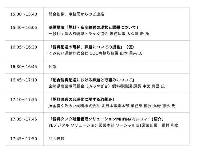 ・対 象:飼料メーカー、飼料配送業者、畜産農家に携わる方