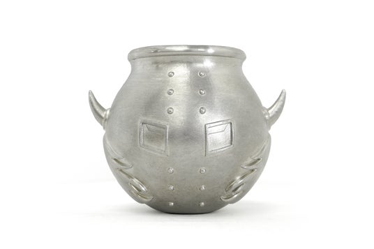 悪魔将軍型のぐい呑みは錫(すず)100%のぐい呑みです。錫製酒器の特長として、熱伝導率が高く、燗が早くつき、冷酒も涼やかに引き立ちます。また、「お酒がまろやかになる」「お酒の等級を上げる」とも言われています。