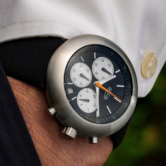 マーク・ニューソンがデザインしたアイコンウォッチ「Hemipod(ヘミポッド)」の特徴的な流線形のケースデザインを継承、オーデマ・ピゲのロイヤルオークオフショアのデザイナー、エマニュエル・ギョエによって再考されたデザインの文字盤を合わせ、クロノグラフモデルCHRONOPOD、シンプルな2針のDUOPODが発売されブランド復活の一役を担いました。