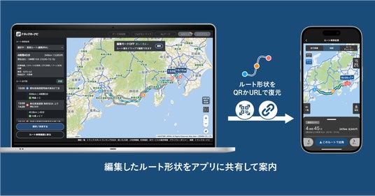 株式会社ナビタイムジャパン(代表取締役社長:大西啓介、本社:東京都港区)のトラック専用カーナビアプリ『トラックカーナビ by NAVITIME』は、2025年8月28日(木)より、Web版でのルート編集機能と、スマホアプリへのルート共有機能を提供開始いたします。