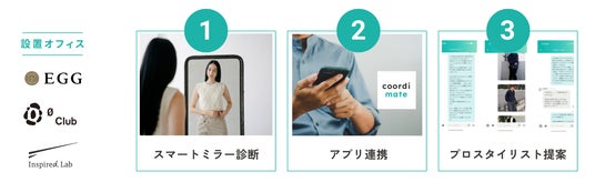三菱地所が運営する「ビジネス支援型シェアオフィス」では、場の提供だけではなく、スタートアップの事業成長のために必要な環境を用意しています。本実証では国内外の成長企業を主な対象としたビジネス開発支援付きサービスオフィス「EGG」、国内初 “気候テック”に特化したイノベーション拠点「0 Club(ゼロクラブ)」、先端テクノロジーと大企業の新事業・研究開発を担うチーム・人材が集まる「Inspired.Lab」の3施設に入居するスタートアップCxOを対象に“専属スタイリスト”の有無による事業支援の検証を実施いたします。実施期間はTMIP事務局までお問い合わせください。1.第1弾:EGG(東京都千代田区丸の内一丁目5番1号 新丸の内ビル 10階)