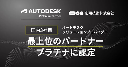 この度のプラチナパートナー昇格は、応用技術が長年にわたり培ってきた土木・建築・製造分野におけるオートデスク製品の販売実績に加え、スペシャライゼーション(特定分野での専門性における認定)、営業、技術的な専門知識など、顧客のDX推進とビジネス成功への総合的な伴走支援が高く評価されたものです。