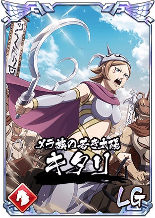 紹介テキスト楊端和に従って鄴攻略戦に参加し、趙国軍と戦った山の民の女戦士・キタリは、LGに覚醒することで新たな副将スキルを習得します。