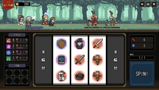戦闘はターン制スロットバトル!攻撃・回復・防御・バフ…出目によって戦況が激変!
