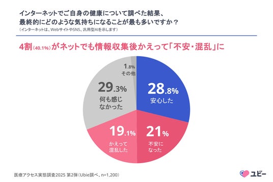 インターネットでの情報収集は、必ずしも安心には繋がっておらず、むしろ最終的に「不安になった」(21.%)「かえって混乱した」(19.1%)と、ネガティブな感情を抱いた人が合計で40.1%に上りました。