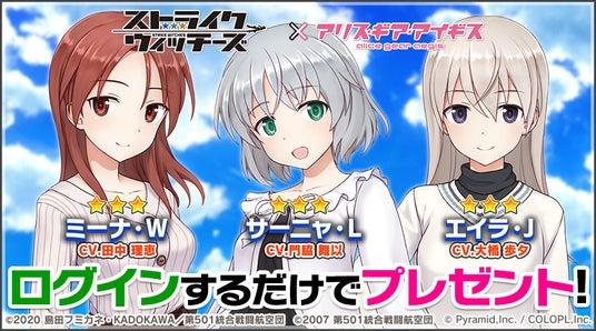 期間中にゲームにログインすると、ミーナ、サーニャ、エイラの★3キャラを受取箱へプレゼントいたします。