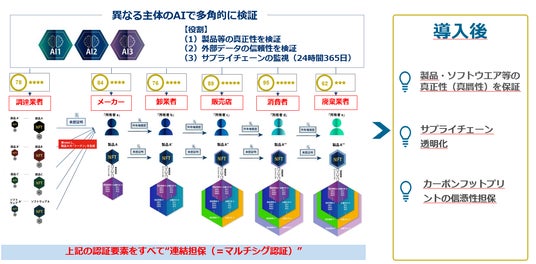 また、この点が「マルチシグネチャー認証」の認証要素として必要十分条件ともなっており、強固な「真正性担保(情物一致・デジタルツイン・RWA:Real World Assets)」、「サプライチェーン透明化」、そして「カーボンフットプリントの真正性」を実現する手法ともなっております。