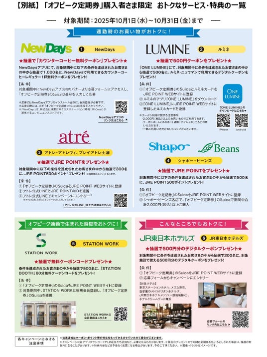なお、首都圏の一部エリアで実施中の「オフピークポイントサービス」については、オフピーク定期券の対象エリア拡大に伴い、2026年3月末をもって終了します。