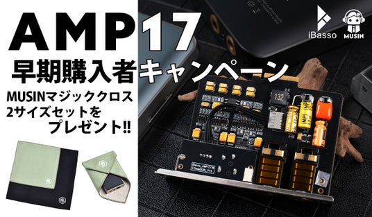 株式会社MUSINは、iBasso Audioの最新AMPカード製品「AMP17」を国内正規流通店舗より、購入対象期間内にご購入いただきましたユーザーを対象とした『AMP17早期購入者キャンペーン』を実施いたします。