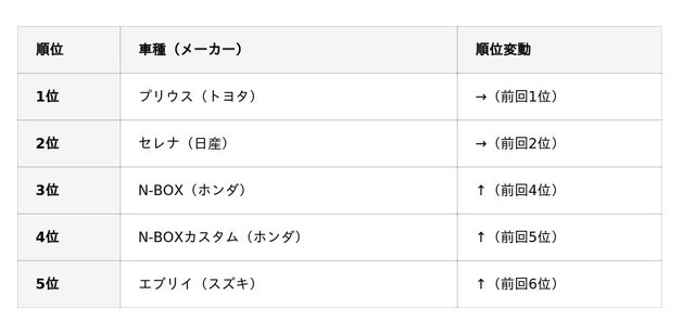 「車選びドットコム」の市場動向から調査した、国産車の2025年7月中古車販売ランキングを紹介します。