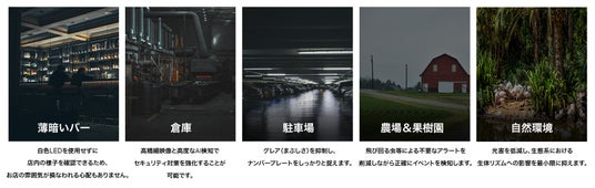 スポットライトを使用しないことで、ライト周辺を飛び回る虫による不要なアラートや消費電力を抑えられ、環境にも配慮した監視が行えます。