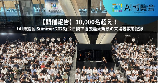 AIポータルメディア「AIsmiley」を運営する株式会社アイスマイリー(東京都渋谷区、代表取締役:板羽晃司)は、2025年8月27日(水)・28日(木)の2日間、東京国際フォーラム ホールEにて「AI博覧会 Summer 2025」を開催しました。2日間の総来場者数は10,294名(初日5,177名、2日目5,117名)となり、過去最大規模となった本イベントでは、100社・200製品以上の出展と50名以上のスピーカーによるカンファレンスを通じて、日本国内のAI業界関係者が一堂に会する活気あるイベントとなりました。