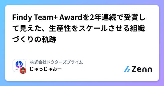 病院・医師・患者向けプラットフォームを開発するドクターズプライム(本社:東京都江東区 代表取締役社長:田)は、エンジニアのプラットフォームを提供するファインディ株式会社が運営する 「Findy Team+」利用企業を対象に、開発生産性が優れたエンジニア組織を表彰する「Findy Team+ Award 2025」 にて、「Small Division / 開発組織全体での開発生産性スコアが優れた組織(50名未満の組織規模)」に選出されました。Findy Team+ Awardでの受賞は、2024年から2年連続となります。