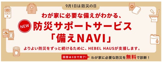 株式会社 KOKUA(本社:東京都渋谷区、代表:泉 勇作、疋田 裕二)と旭化成ホームズ株式会社(本社:東京都千代田区、代表取締役社長:大和久 裕二)は日々の暮らしの中で自然に防災を取り入れることができる防災サポートサービス「備え NAVI」を旭化成ホームズの顧客向け会員制WebサイトHEBELIAN NET.にて2025年8月26日より提供開始しましたのでお知らせします。
