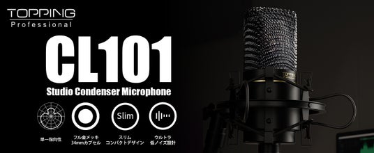 「CL101」の最大の特徴は、設置環境を選ばないコンパクトなデザインながらも、進化した単一指向性パターンにより、レコーディングの際のわずかな指向性のずれも配慮する必要がなく、様々な用途で手軽に高品質なレコーディングを体感できるという点です。