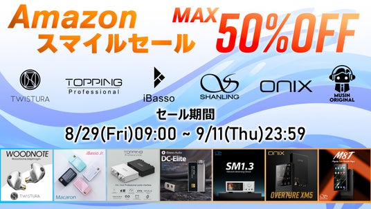 株式会社MUSINは、Amazonスマイルセールにて、2025年8月29日(金)09:00~9月11日(木)23:59までの後続セール期間を含めた13日間、「最大50%OFFのオーディオセール」を実施いたします。