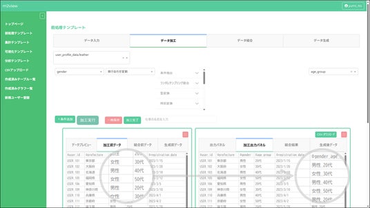 マウスでクリックするだけの直感的な操作で、データの整形から高度な分析まで、一連の作業を包括的にサポート。