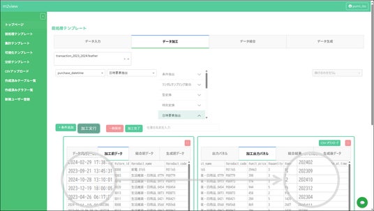 「m2view」では、データを見たい単位(年、月、曜日など)に応じて、目的の列を選び、メニューから操作するだけで自動的に列を追加できます。