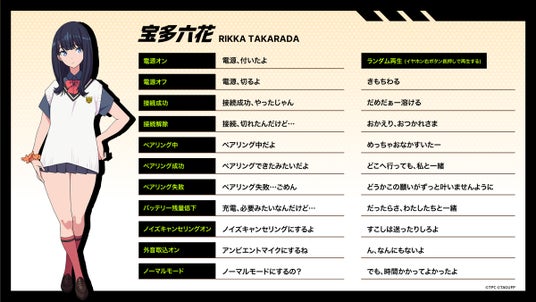 電源ON/OFFなどをお知らせするボイスガイダンスに加え、劇中の名セリフを再現したスペシャルボイスを約150種類収録。『グリッドマン ユニバース』に登場する6キャラクターの声と、いつの日も、どこまでも一緒です。
