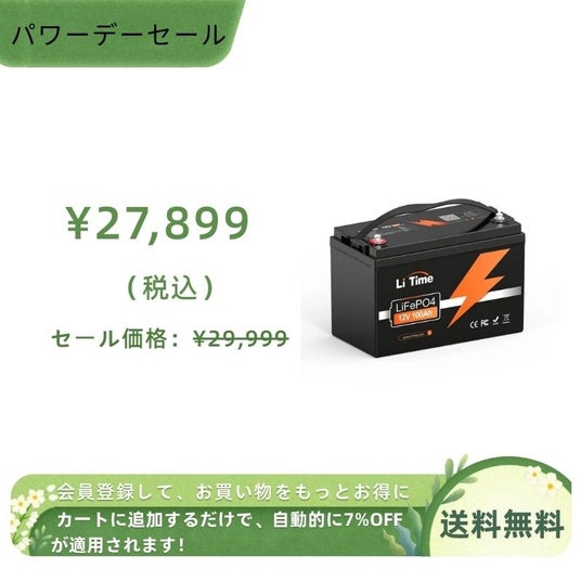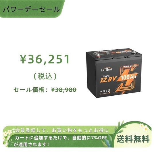 「LiTimeパワーデー」は、公式サイトで 最大60%OFF の特別価格にてLiTimeバッテリーおよび関連アクセサリーをご購入いただける、年に一度の特別セールです。キャンピングカー、船舶、オフグリッド、防災用電源など幅広いシーンで信頼されている LiTimeリン酸鉄リチウムイオンバッテリー を、この機会にぜひお得にお試しください。